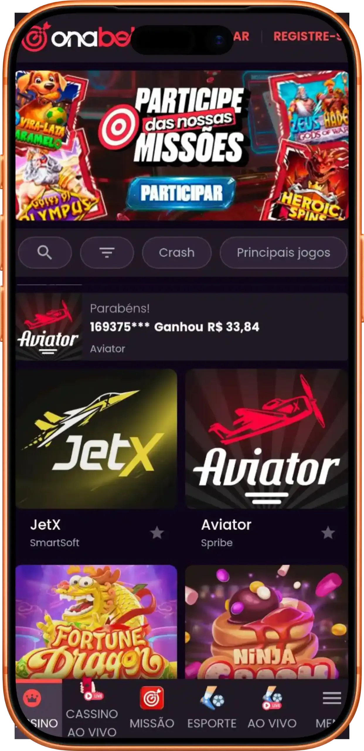 | Jogos de Cassino | Slots, Jogos de Mesa, Cassino ao Vivo, Crash Games e mais |
