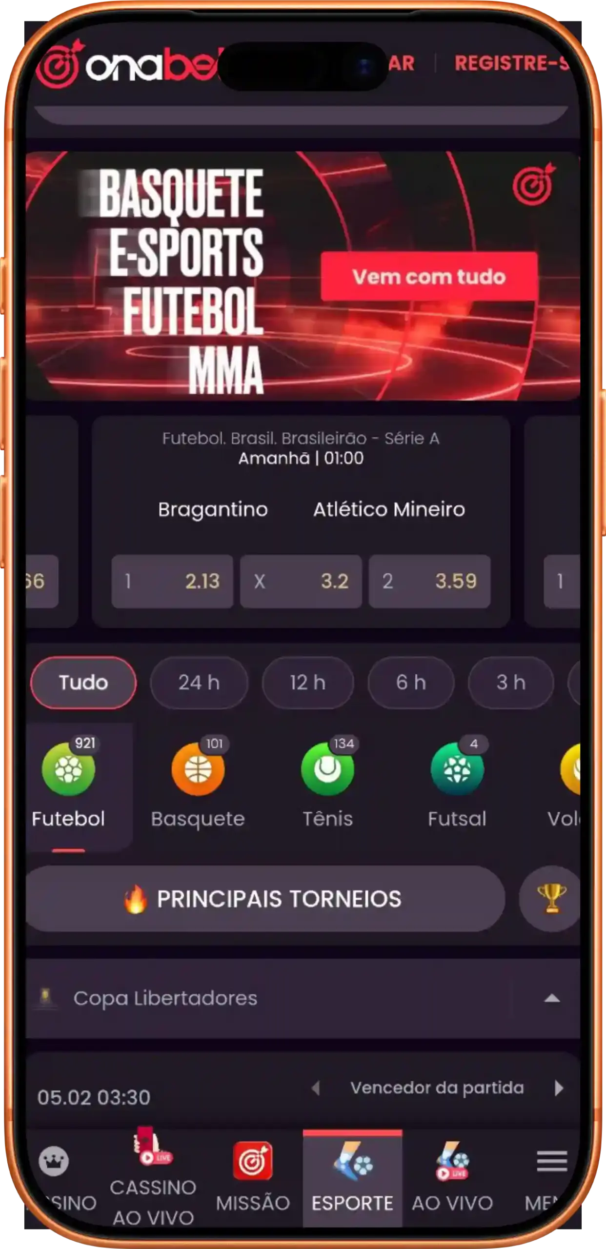 A Onabet plataforma também oferece apostas esportivas para os seus usuários. Basta clicar na aba “Esporte” na página inicial e navegar pelos esportes, eventos e mercados de apostas. Tudo é muito simples e organizado, e o bilhete de apostas oferece recursos interessantes, como criação de odds, cashout e seleções múltiplas.