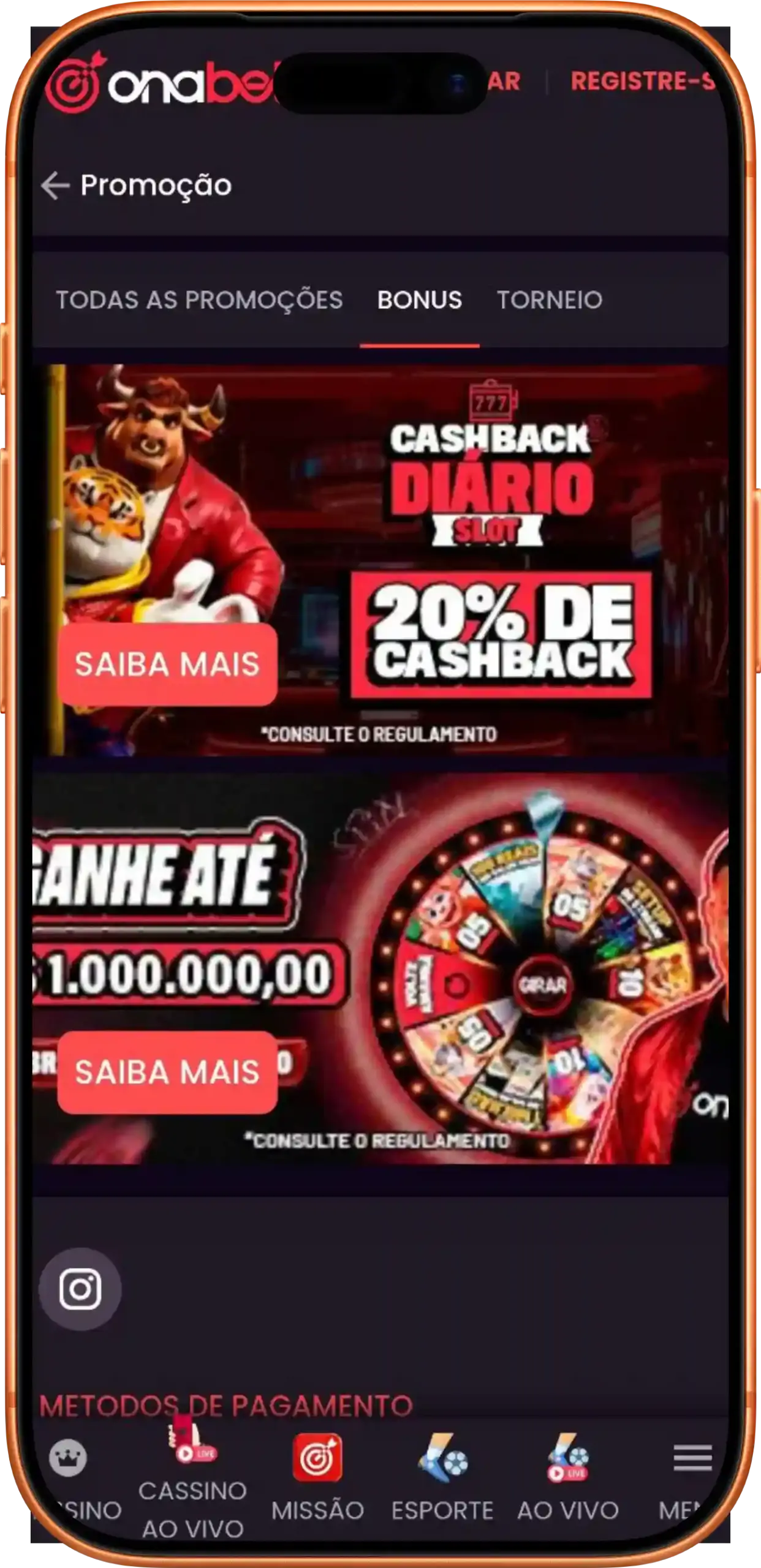 Onde fica a roleta da Onabet?
